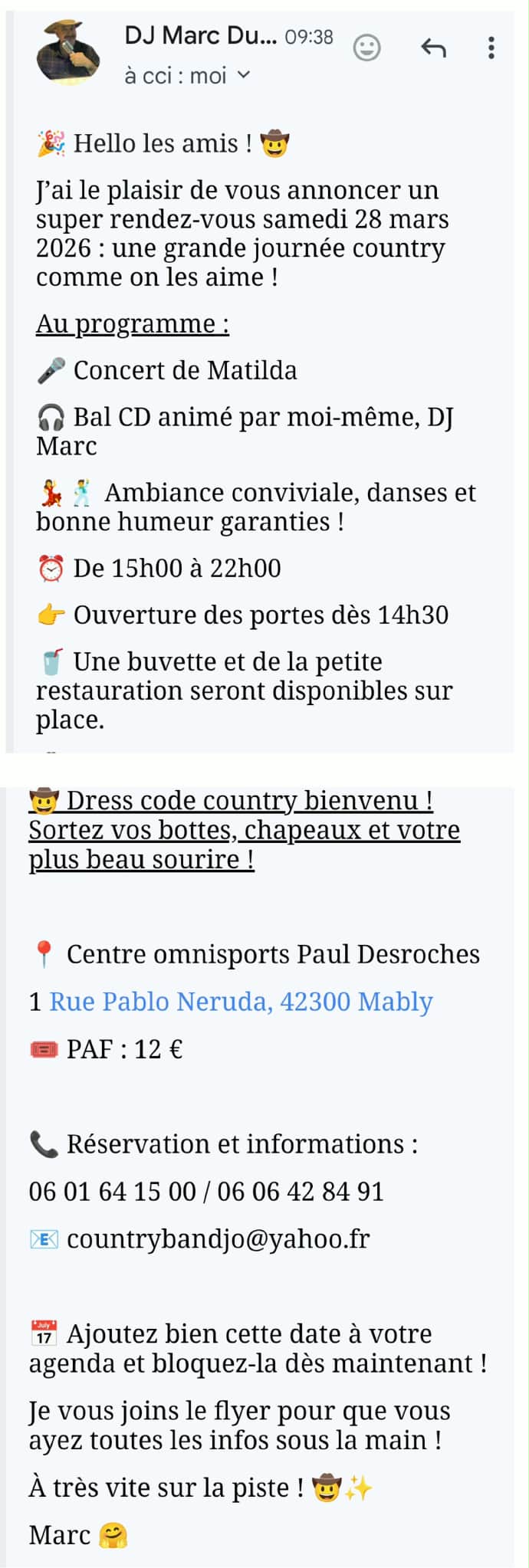 28/03/2026 : Country Band'Jo Mably (42) FLYERS* .... INFO du BAL*