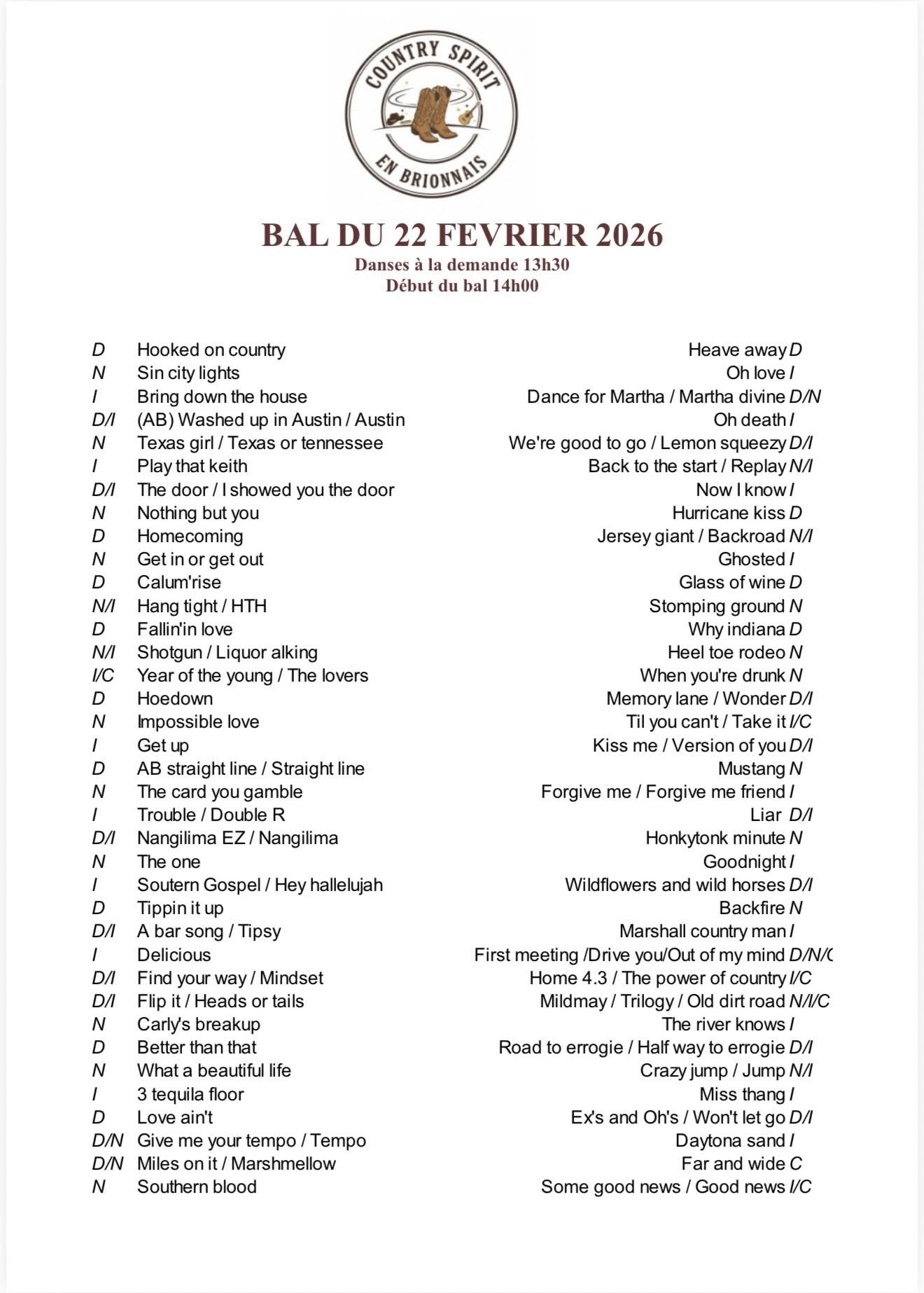 22/02/2026 : Bal Country à Saint Martin du lac (71) Flyer* Playlist*