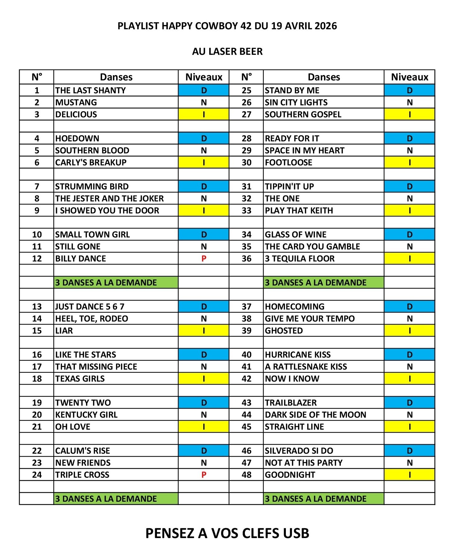​19/04/2026 : Bal country Happy Cowboy42 au Laser Beer Riorges (42) Flyers* ......Playlist*